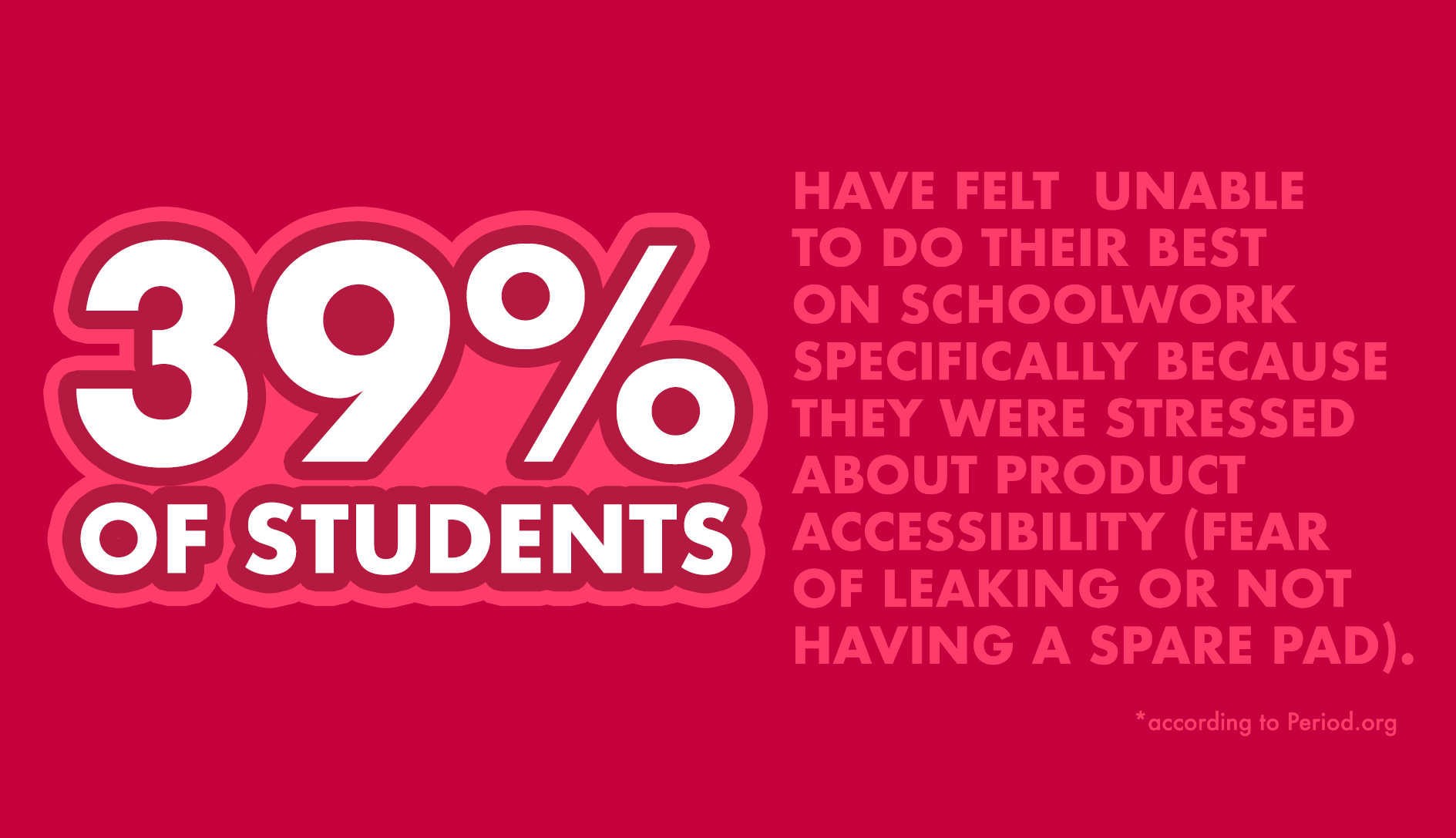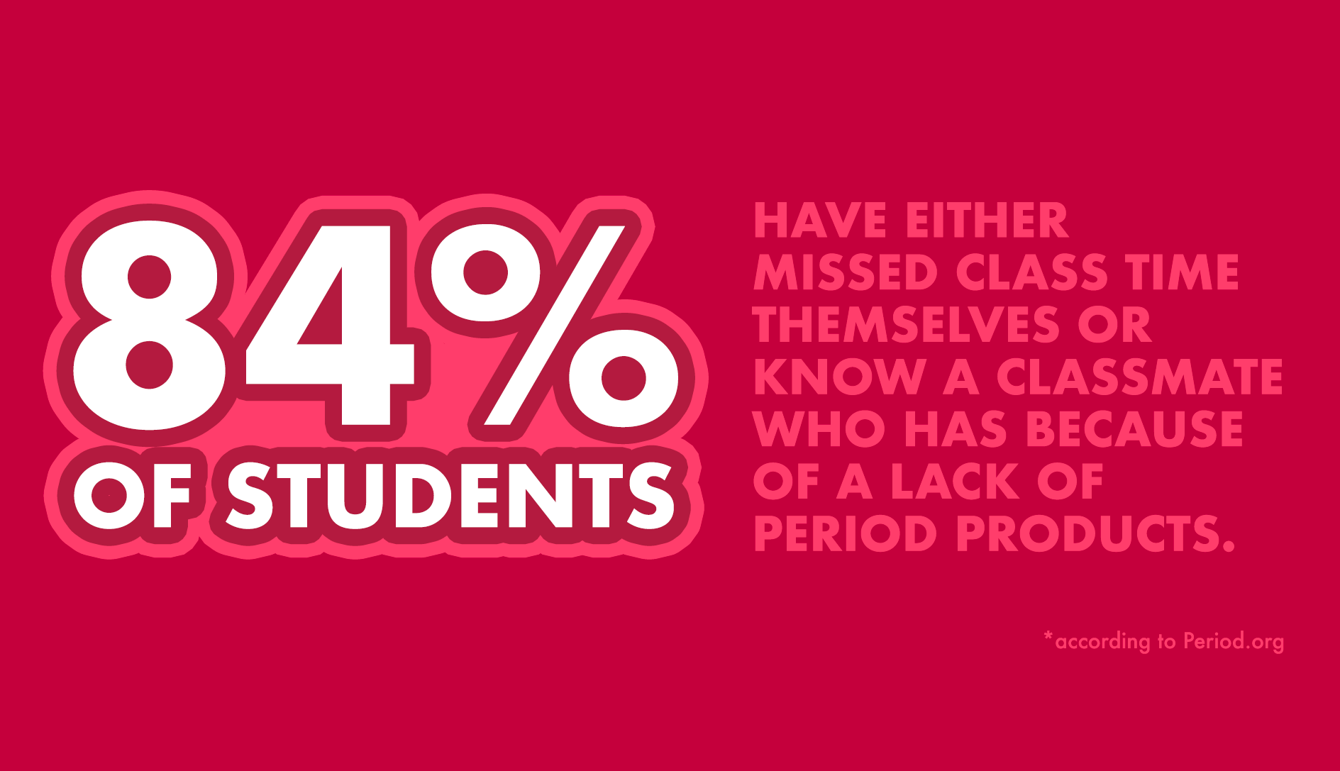 More than 3 in 5 students miss valuable school time because they do not have access to hygiene products.*